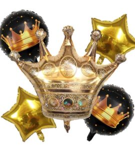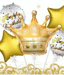 Large Golden Crown with 2 Round Shaped HBD & 2 Crown Shaped Foil Balloon