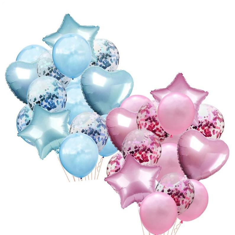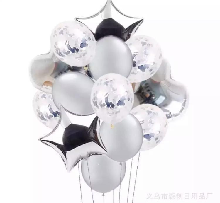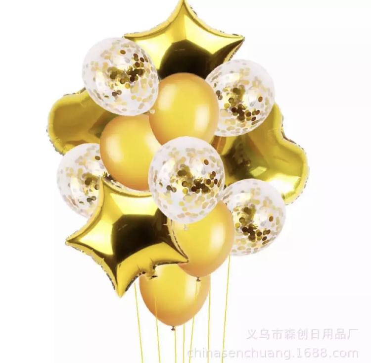 - The package includes: 2pcs of 18 inches Star-shaped Foil balloons, 2pcs of 18 inches Heart-shaped Foil balloons, 5pcs of 12 inch latex balloons & 5pcs of 12 inch Confetti Filled Latex Balloons
